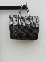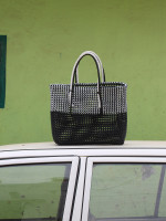 This hand knitted red and brown bag crafted out of wire renders a very classic look. The bag is spacious and comfortable to carry making it as your first choice for both shopping and outings.