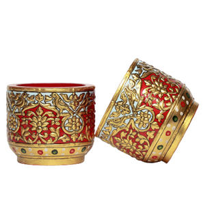P-TAL’s handcrafted classic circular masala box comes with a rustic golden look and is great to store spices. The 7 different sections can be effectively used for keeping all the spices handy. This multi-utility traditional cutlery can also be used to store jewellery, dry fruits, or small items in one place. This kitchenware is handmade by the Thathera community from Amritsar. This spice box is a must-have eco-friendly solution as your kitchen essential.