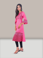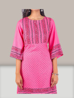 Hand Block Print Pure Cotton Dotted Pink Women Kurti L size by Tisser Artisans