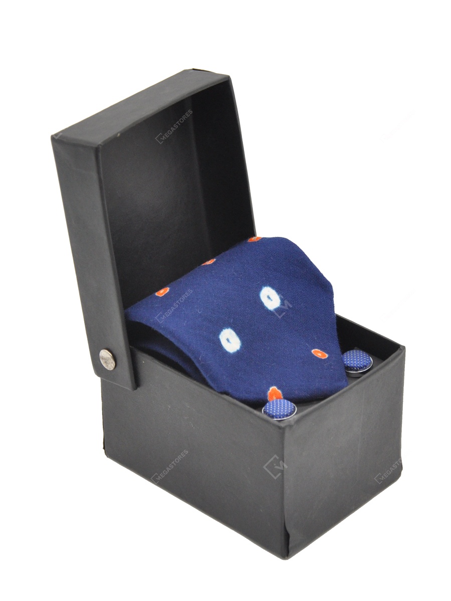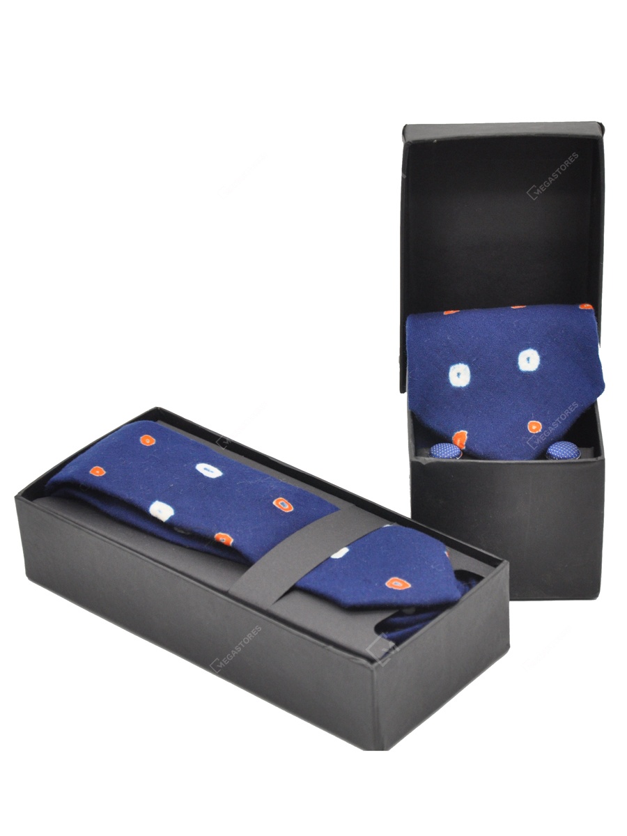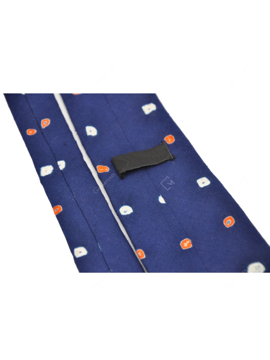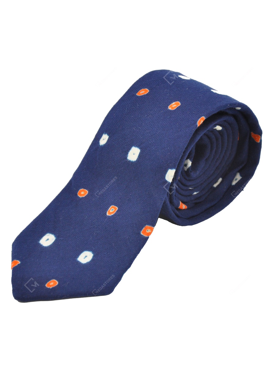 This Men's tie is made out of hand made bandhani cotton silk cloth. Navy blue color with small white and orange colored square-like structures resonates with the modern corporate trend. Also, it can be easily mixed and matched with the different color of shirts. It can be a perfect gift for everyman on any occasion.