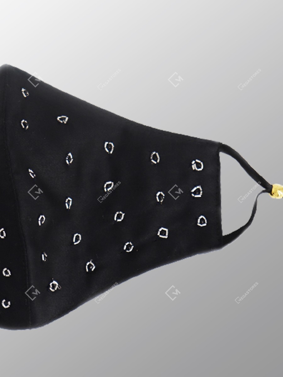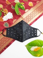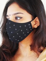 This black colored triple layered mask is hand embroidered by the craftswomen in Kota, Rajasthan. The combination of festive colors on cotton fabric with golden zari hand embroidery makes it a perfect accessory for your festive outfits.