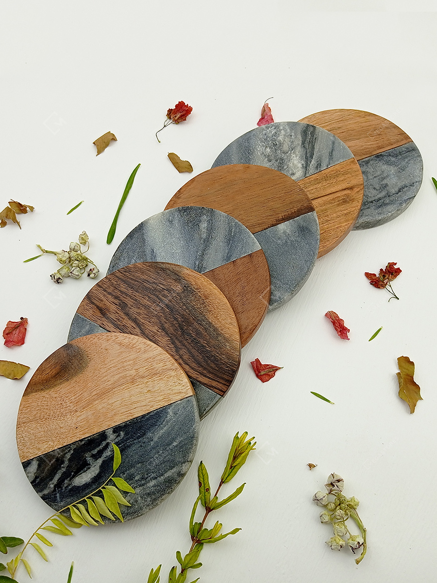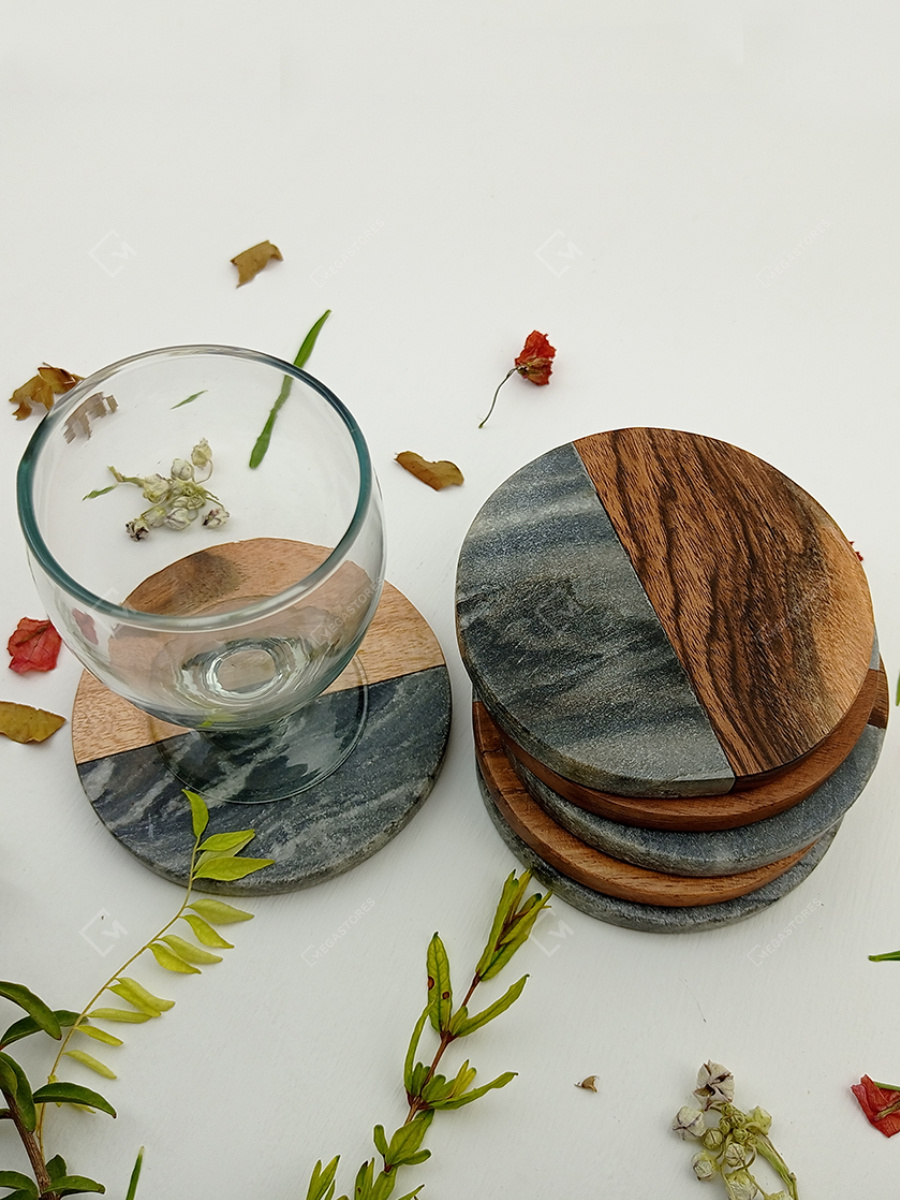 UZMA wood and stone coaster is subtle and elegant. With the shiny black marble and rustic wood, this set of six makes it worth its money. Not only do they keep the tables clean and polished, but it also adds a lot to the aesthetics of the surface and room.