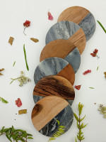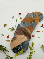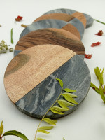 Marble & Wood Handcrafted Set of 4 Coasters Uzma by Al Maun