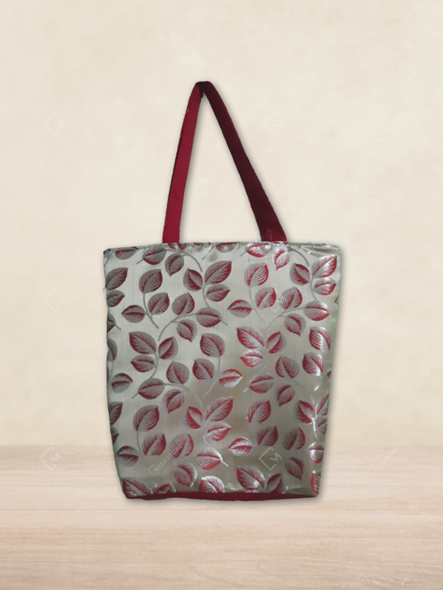 Handcrafted Pink Leaf Curtain Motif Tote Bag is in fashion right now, and you should own something that is unique, different and is eco-friendly.