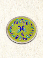 Handcrafted copper enamel yellow round plate looks very ethnic. This piece of wall decor is handmade by local artisans from Alibag, Maharashtra.