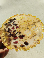 Resin art Golden 8 x 8 inches Ring Ceremony Platter with Ring Boxes is elegantly handcrafted. This thali is a must buy buy piece of art if you are looking for a gift for someone.