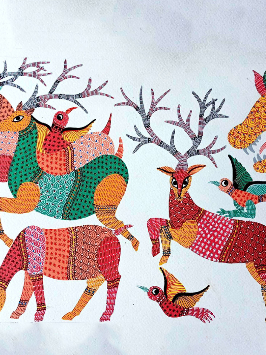 Gond Art is a unique art of painting practiced by tribals from Madhya Pradesh showcasing nature in the form of plants, animals, birds, culture, and festivals.