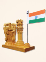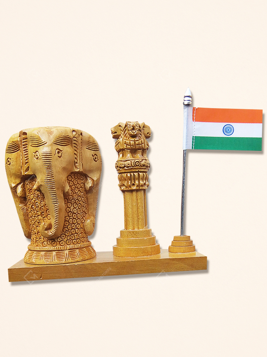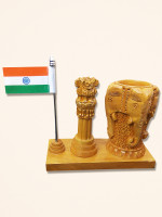 This handcrafted pen holder showcases intricately designed Indian flag with Ashok stambh carved out of Kadam wood also known as White wood.