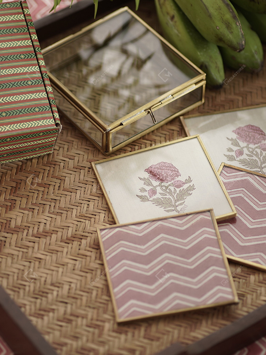 This stunning Kanaier Set of 4 Coaster Gift Set features a mesmerizing glass design, showcasing a captivating gold hue, and includes four coasters and a glass box. Elevate the aesthetic appeal of your kitchen with this magnificent set, perfect for adding a touch of glamour.