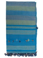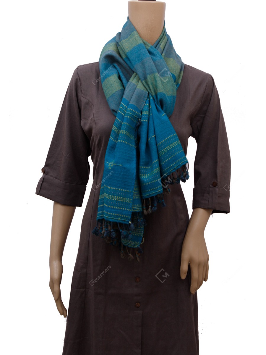 This hand-woven stole with shades of sky blue and light green complemented by tassels at the end is handcrafted by our artisan of Kutch Kantilal Vankar using natural wool. It is a perfect piece of art that can be wrapped around with a variety of outfits.