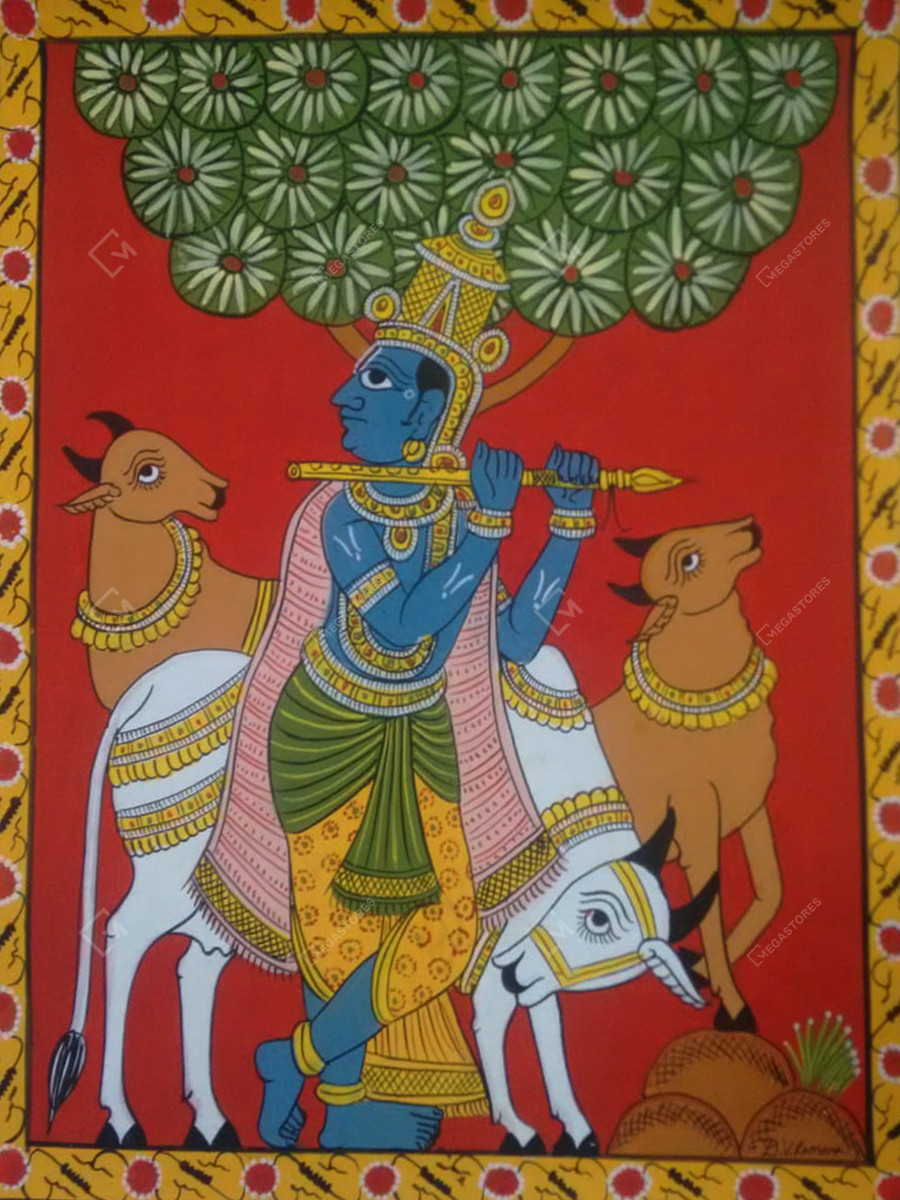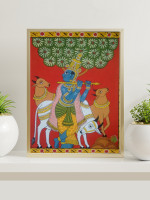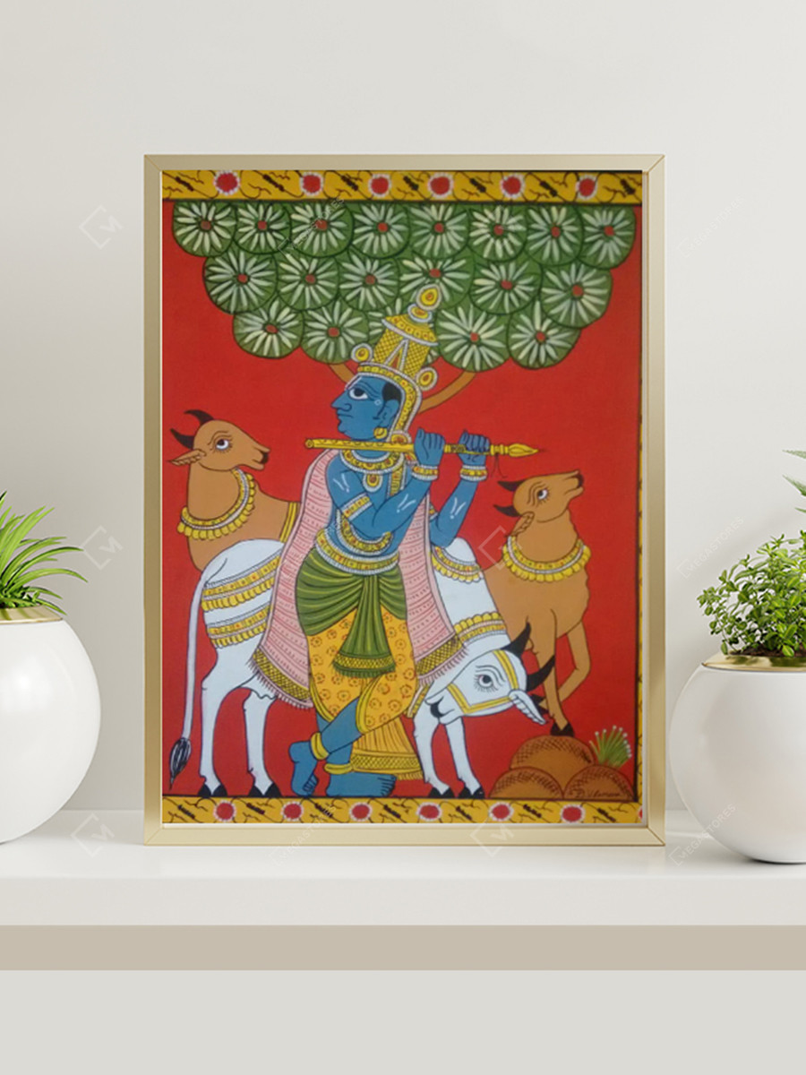 These hand painted cheriyal lord Krishna painting being made out of natural materials are truly sustainable. It is a must have piece of wall decor to add ethnic charm to your home.